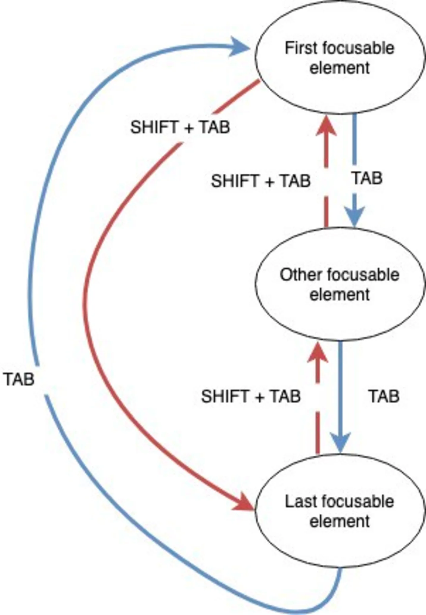 In all other cases (i.e. in between the first and last focusable elements), we don’t do anything.