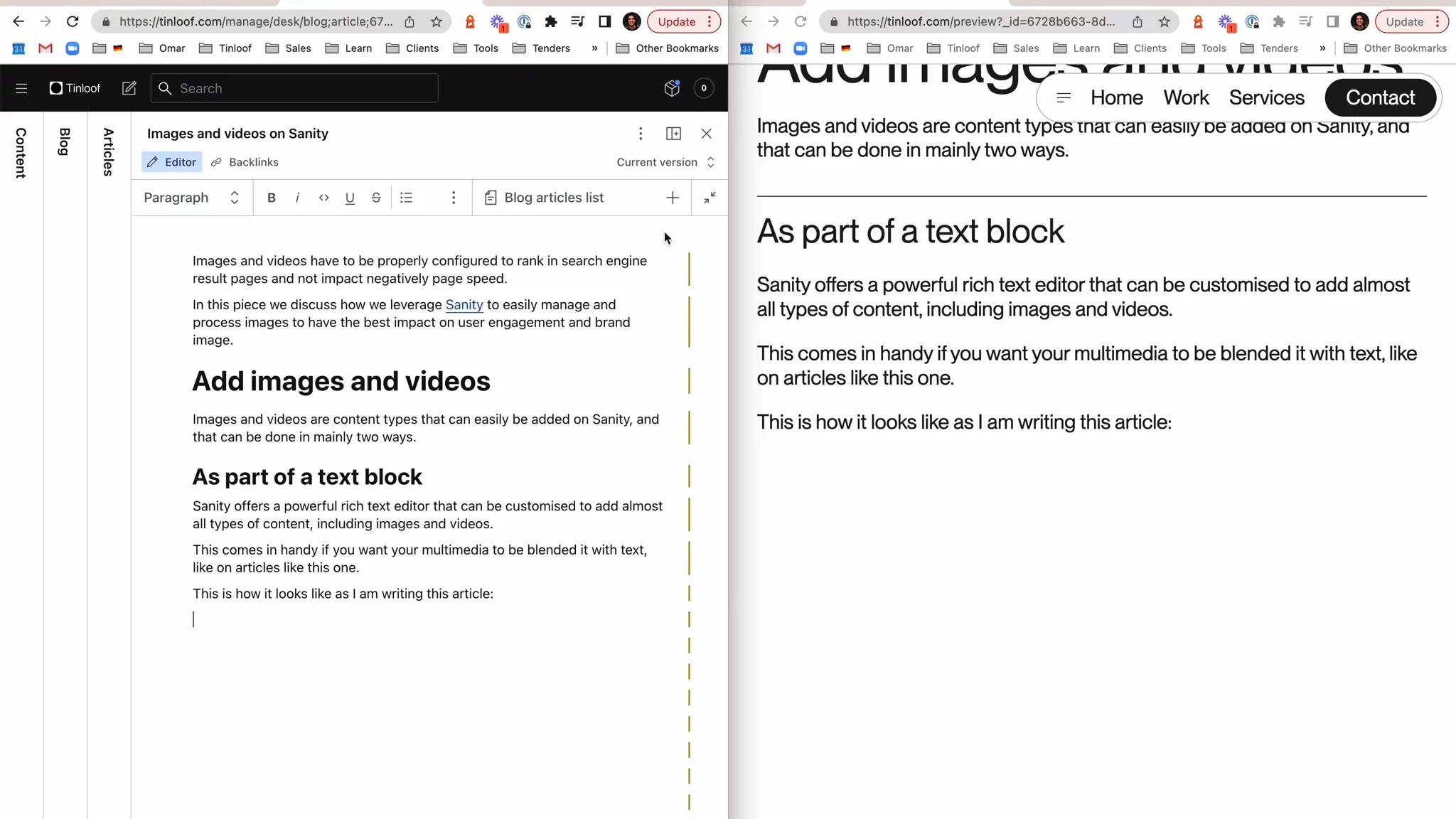 Sanity offers a powerful rich text editor that can be customised to add any type of content, including images and videos.