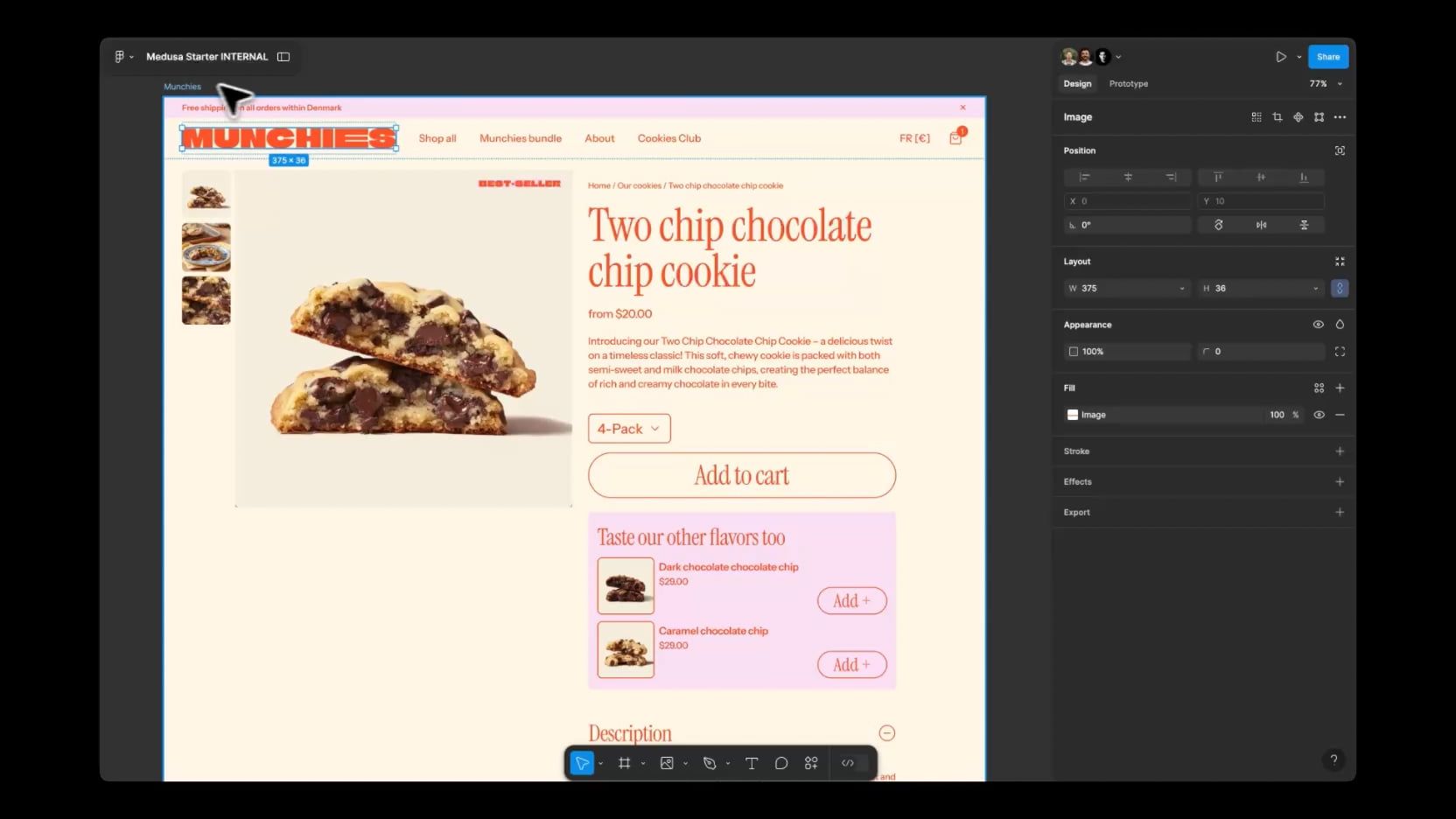 To ensure the starter wasn't overly minimalistic yet still retained design flexibility, we created Munchies, a fictional brand with a focus on identity rather than UI complexity to make a difference in the amount of templates you can find.