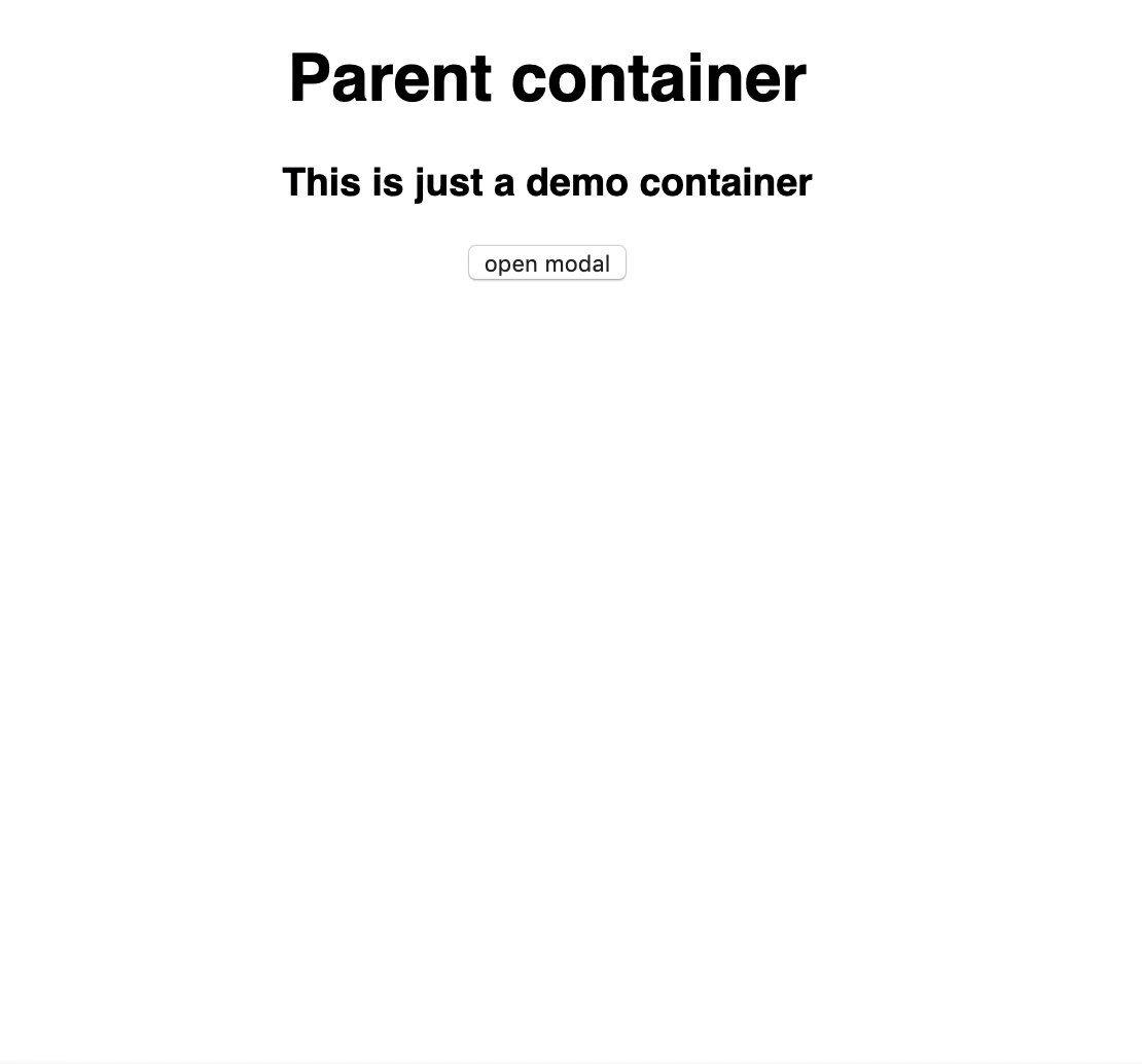 1/* src/App.re */23[%bs.raw {|require('./App.css')|}];45[@react.component]6let make = () => {7 let (isModalVisible, setIsModalVisible) = React.useState(() => false);8 <div className="App">9 <h1> {"Parent container" |> ReasonReact.string} </h1>10 <h3> {"This is just a demo container" |> ReasonReact.string} </h3>11 <button onClick={_ => setIsModalVisible(_ => true)}>12 {"open modal" |> ReasonReact.string}13 </button>14 {!isModalVisible15 ? ReasonReact.null : <Modal> {"Foo" |> ReasonReact.string} </Modal>}16 </div>;17};